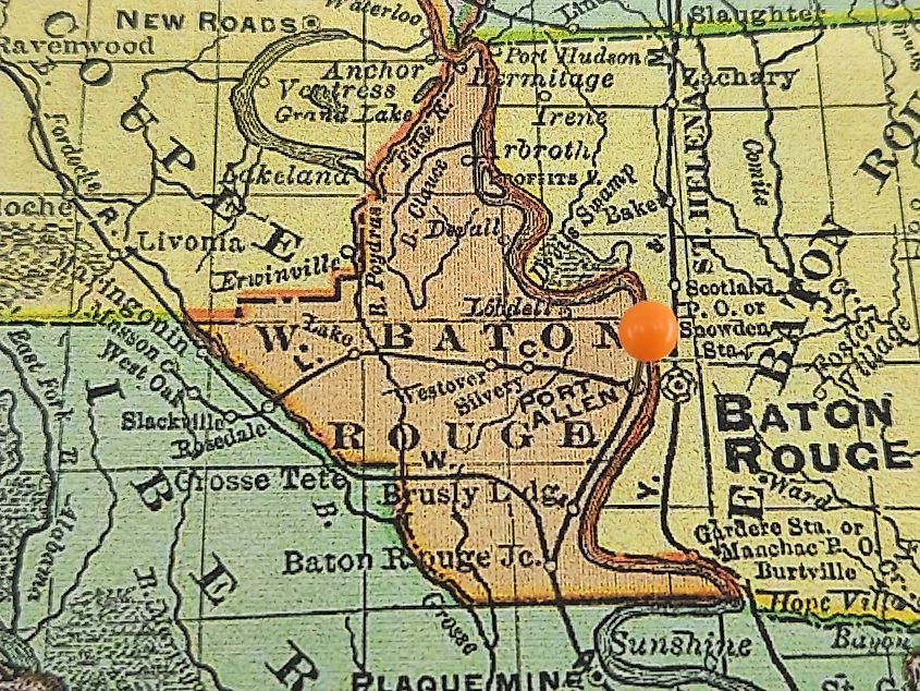 East Baton Rouge Parish: Originated in 1810 with a name drawn from a red pole used by Native groups to mark territory boundaries.
