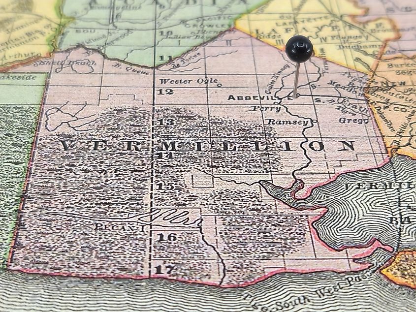 Vermilion Parish: Formed in 1844 with ties to the Vermilion River and Vermilion Bay. Abbeville serves as its seat.