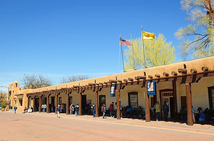 Thick adobe walls stretch along the north side of the Plaza, topped by a shaded portal where Native artisans sell handmade jewelry and crafts today. Inside, museum galleries trace New Mexico’s political, cultural, and artistic history.