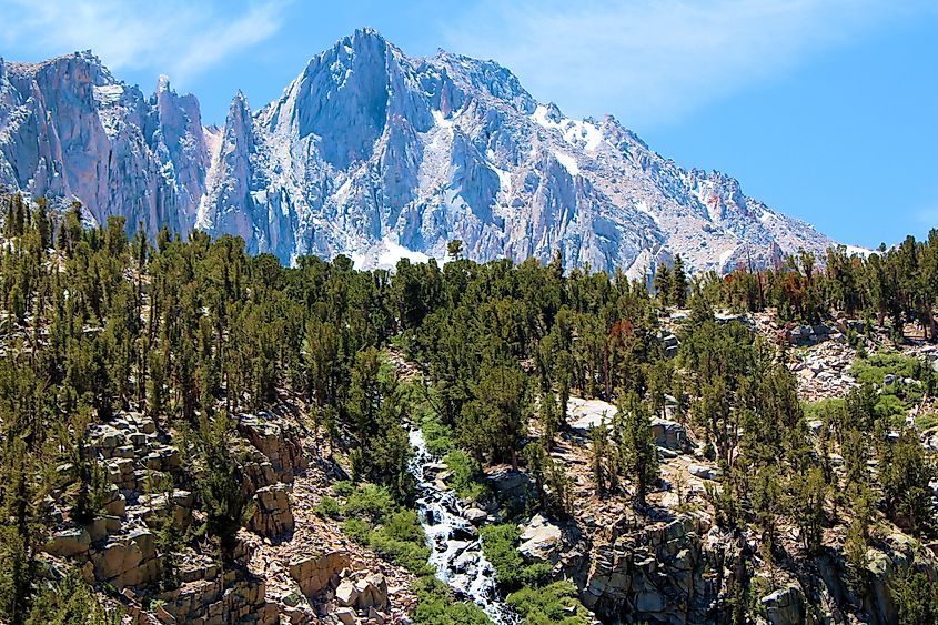 Much of the range is composed of exposed granite, hardened from molten rock that slowly cooled deep underground before being uplifted. Over millions of years, glaciers and rivers carved valleys, basins, and alpine lakes, leaving behind dramatic landscapes. Mount Whitney, the highest peak in the contiguous United States, rises to 14,505 feet, a testament to these powerful geological forces. The Sierra Nevada is also home to iconic natural wonders such as Lake Tahoe and Yosemite National Park, where granite cliffs, waterfalls, and giant sequoias draw millions of visitors annually.