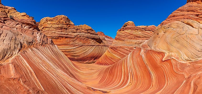This narrow sandstone ridge extends for about 200 feet, with curves so precise that photographs often appear digitally altered. The rock is part of the Navajo Sandstone formation, deposited during the Jurassic period when this region was a vast desert. Unique cross-bedding patterns, where layers of sand shifted over time, give The Wave its rippling, fluid appearance. Access to The Wave is restricted through a lottery system, highlighting its delicate nature and popularity among geologists and photographers.