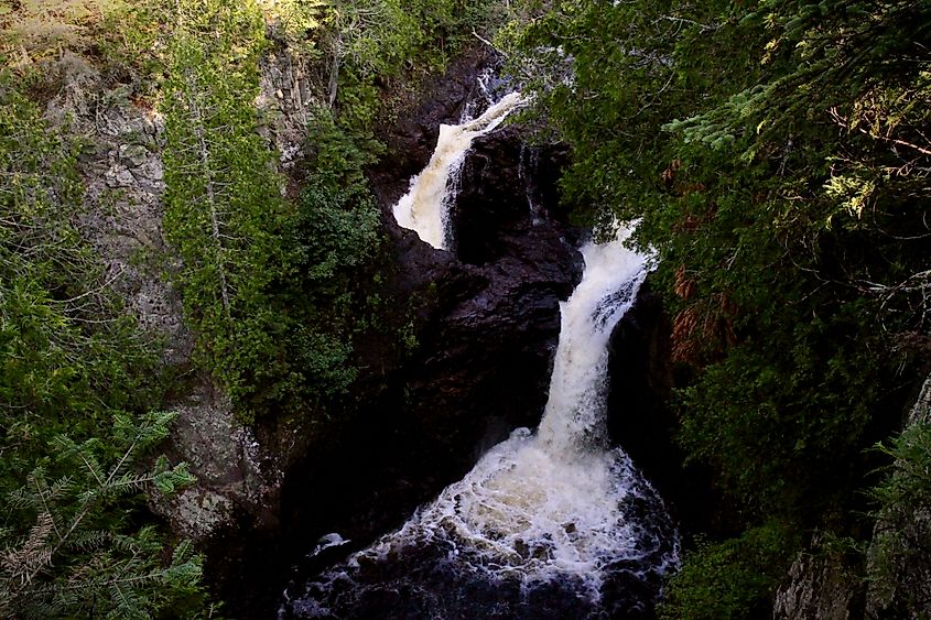 Devil’s Kettle is a waterfall with a geological mystery at Judge C. R. Magney State Park along the Brule River in Minnesota. One side of the river plunges over a cliff into a visible pool, while the other side disappears into a pothole and seemingly vanishes. Attempts to track the water’s path using dye, ping pong balls, and other methods have failed, making this waterfall one of the country’s most intriguing natural enigmas.