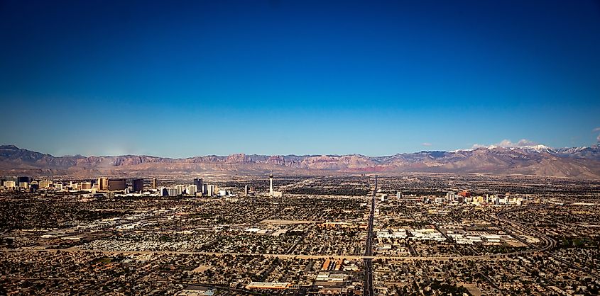 Las Vegas is best known for neon lights, casinos, and round-the-clock entertainment, but what is most overlooked is just how dry this desert metropolis really is. Located in the Mojave Desert, Las Vegas receives about 4.2 inches of rainfall each year. The valley surrounding the city is ringed by mountains that block moisture, keeping conditions arid.