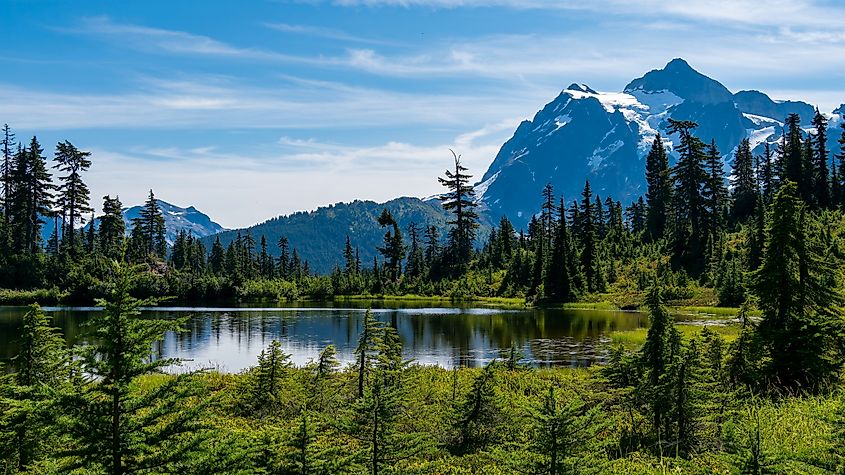 The western part of the state is draped in lush temperate rainforest, including Olympic National Park’s Hoh Rain Forest. Just a few hours away, Mount Rainier towers at 14,410 feet, commanding the skyline around Seattle. Volcanoes like Mount St. Helens and Mount Baker highlight the region’s restless geology, reminders that the Pacific Northwest is part of the volatile “Ring of Fire.”