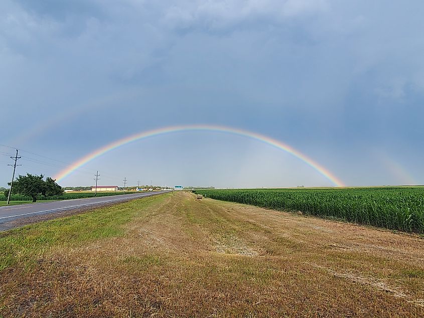 Eastern Nebraska follows the classic Midwestern pattern with fertile soils and rain-fed fields similar to Iowa. Farther west, drier conditions require irrigation, and center-pivot systems drawing from the Ogallala Aquifer transform the plains into highly productive cornland.